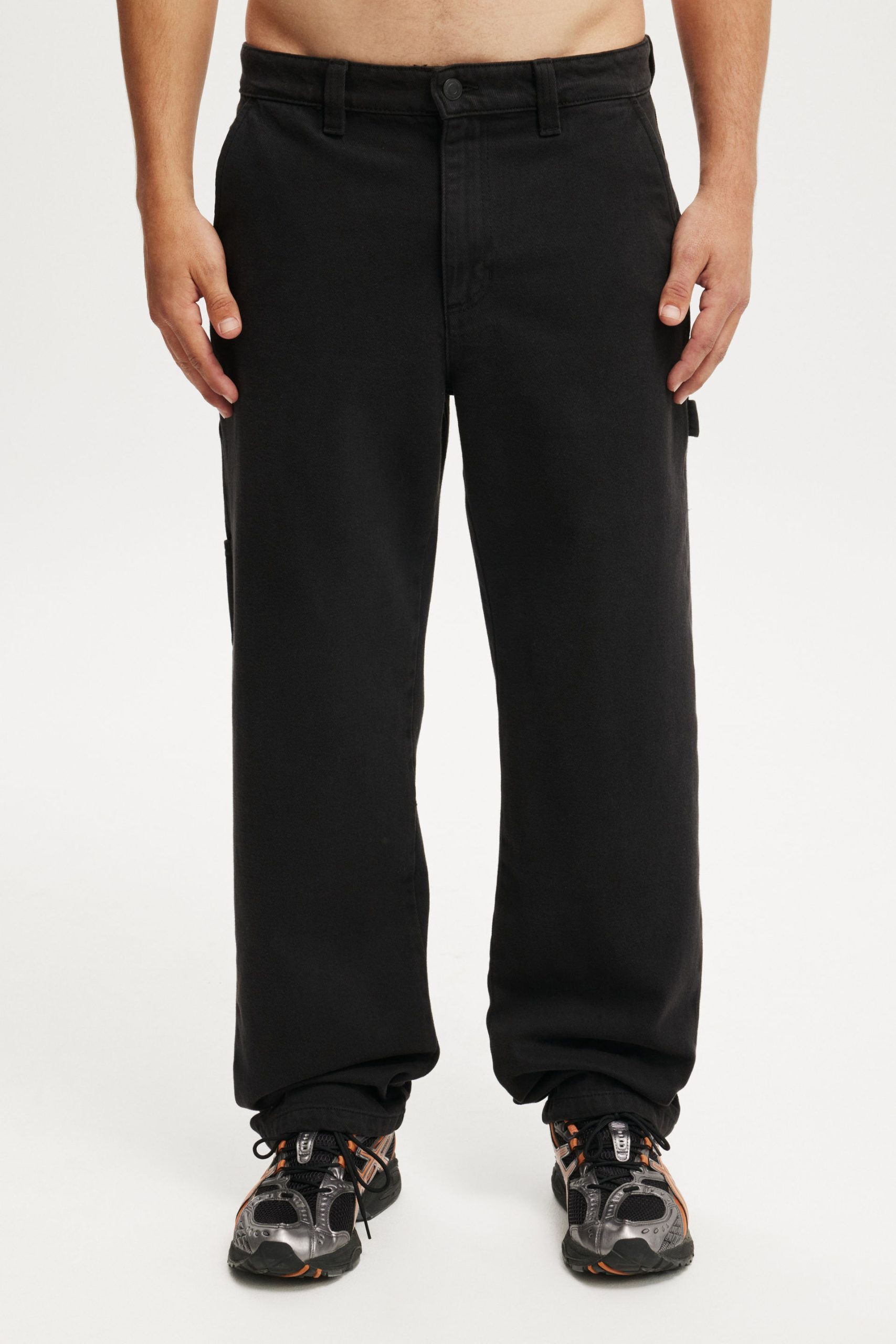 • Relaxed Waist• Relaxed Rise• Relaxed Straight Leg• Carpenter Details• Front Slant Pockets• Back Patch PocketsComposition