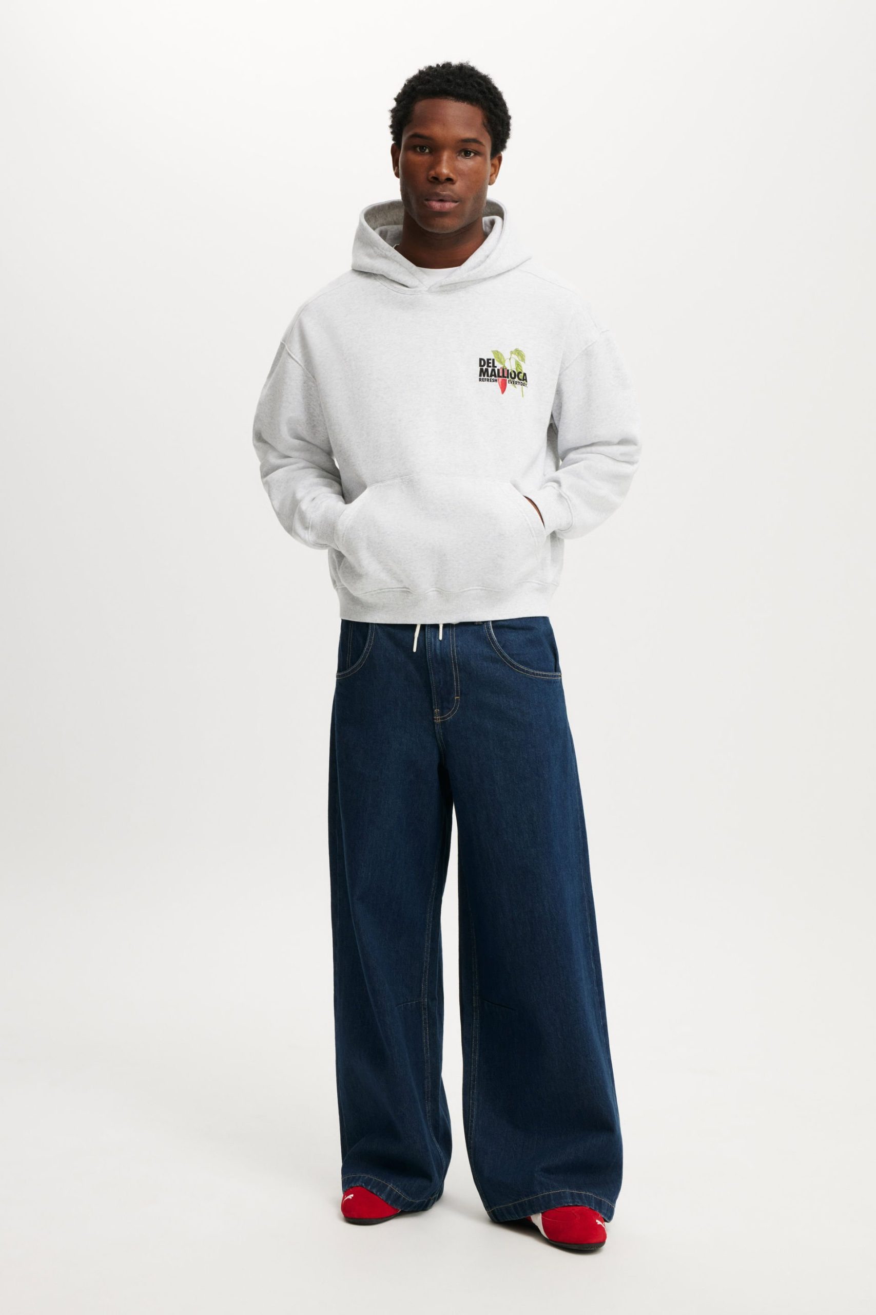 - Relaxed, Box Fit silhouette