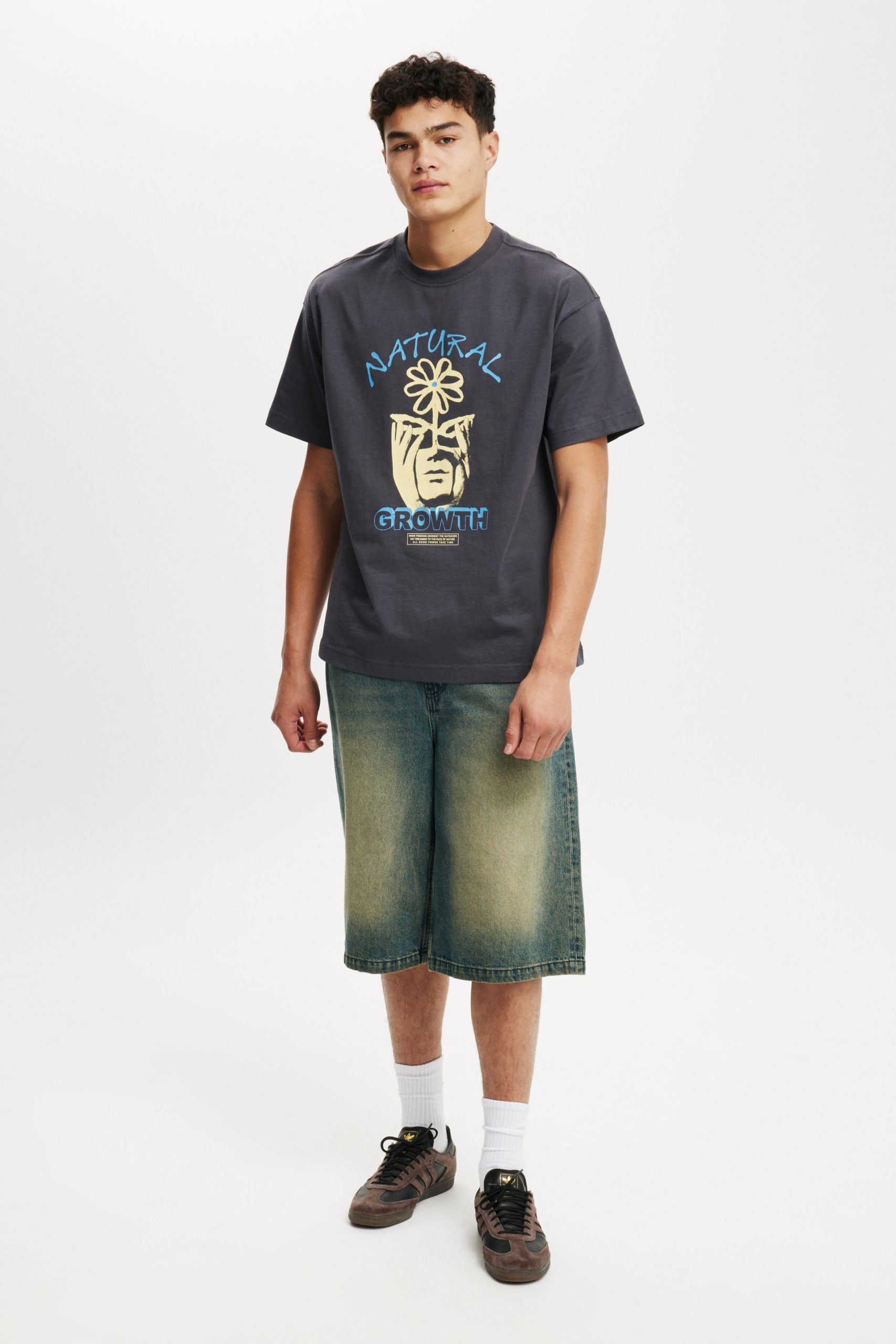 - Slouchy shoulder and extended sleeve length