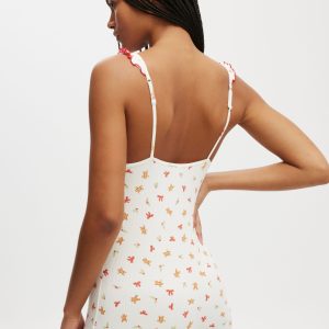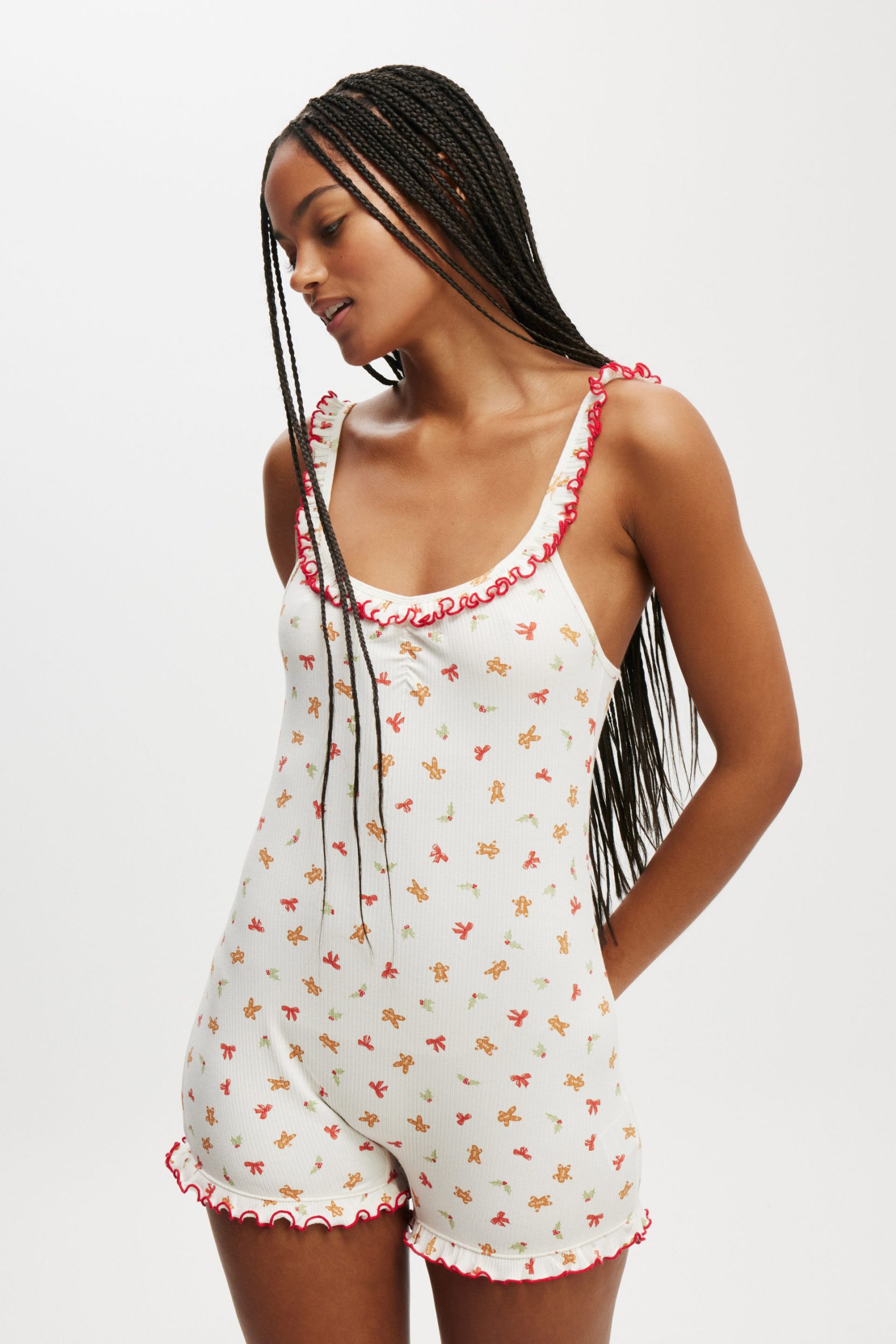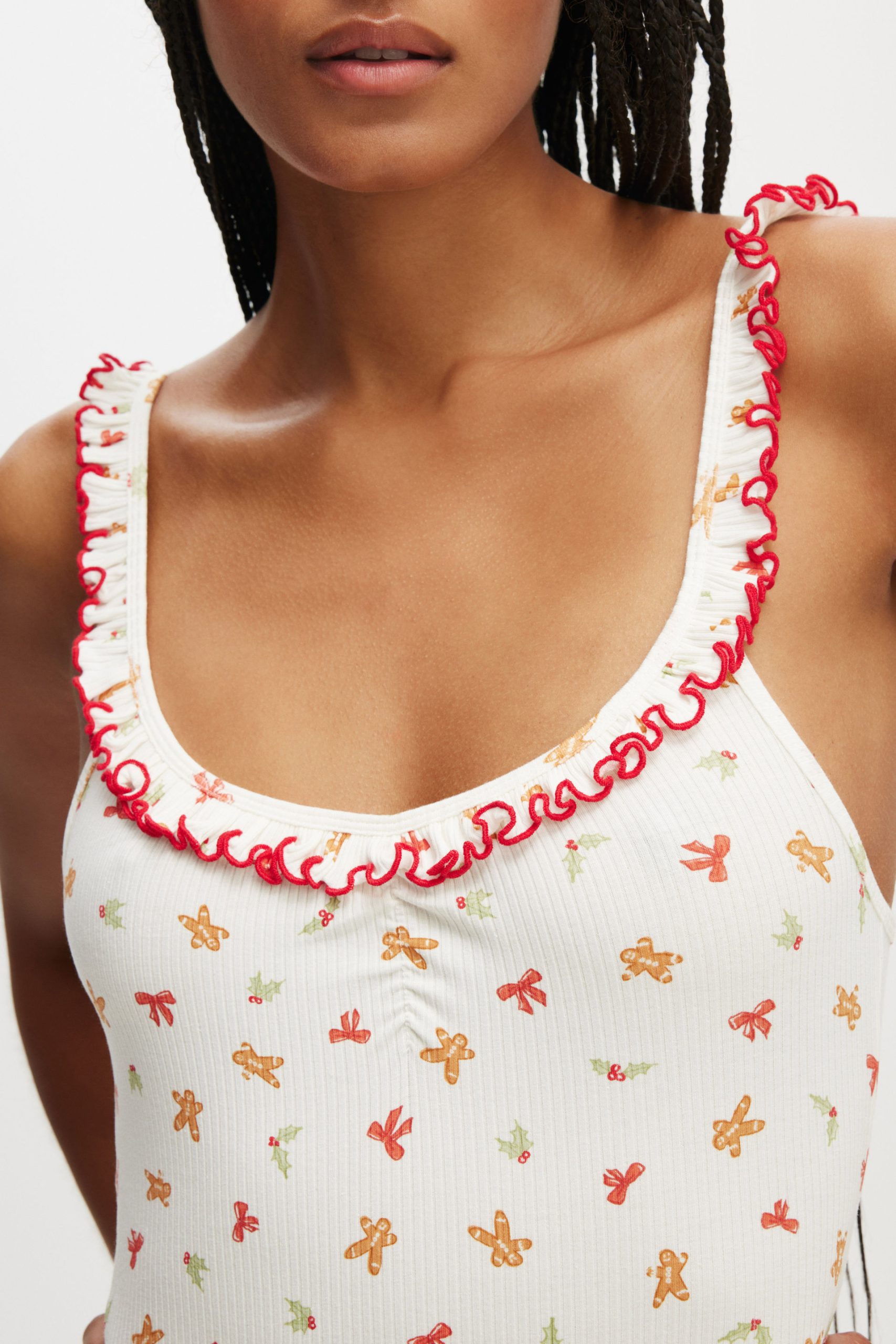 - Ruffle details on hem and neckline
