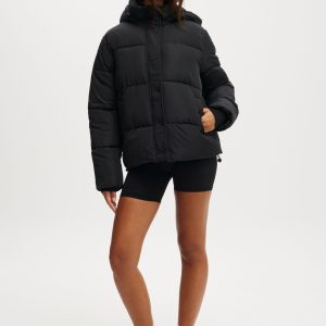 The Mother Puffer Removable Hood Jacket